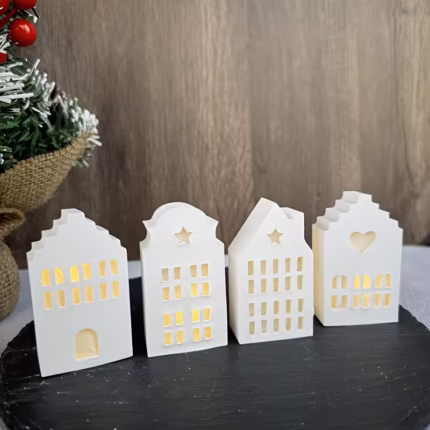 Silikonowa forma Jesmonite do odlewania dekoracji – 4 domki, 9,3 × 7,2 cm
